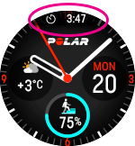 Voit muokata Polar Ignite 3:n kellotaulua valitsemalla kellotaulun tyylin ja värit valmiista vaihtoehdoista. Lisäksi voit valita, mitä widgettejä kellotaulussa näytetään. Widgettien avulla näet tietoa yhdellä vilkaisulla ja voit käyttää helposti erilaisia toimintoja, kuten alaspäin laskevaa ajastinta ja Serene-hengitysharjoitusta. Katso lisätietoja kohdasta Kellotaulun asetukset.