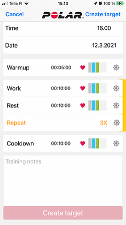 若要在 Polar Flow 網絡服務中創建訓練目標:
