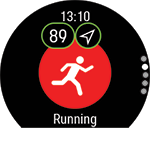 - Treeninguandmete täpsuse tagamiseks püsige treeningueelses režiimis, kuni kell on leidnud teie südame löögisageduse ja satelliitide signaalid (kui valitud spordiala seda nõuab). Satelliitide signaalide püüdmiseks minge välja ja eemale kõrgetest hoonetest ja puudest. Signaalide otsimise ajal kandke kella nii, et selle ekraan oleks suunaga ülespoole. Hoidke rannet liikumatuna ja ärge puudutage kella.