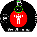 Kui kannate kellaga seotud Polari südame löögisageduse andurit, kasutatakse treeningu ajal automaatselt seda andurit südame löögisageduse mõõtmiseks. Südame löögisageduse sümbolit ümbritsev sinine ring näitab, et kell kasutab südame löögisageduse mõõtmiseks seotud andurit. - Kui kõik signaalid on leitud, puudutage treeningu alustamiseks ekraani.