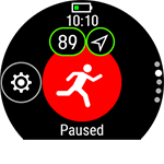 Jatka treeniä napauttamalla lajin kuvaketta. Voit lopettaa sen pitämällä nappia painettuna. Kello antaa yhteenvedon treenistäsi heti treenin lopettamisen jälkeen.