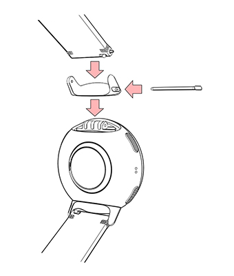 - Put the adapter into place, and then insert the pin into the pin hole on the adapter, and push it firmly into place. Make sure the knob on the pin is the right way around.