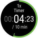 - 카운트다운이 끝나면 워치가 진동으로 알려줍니다. 카운트다운 타이머를 다시 시작하려면 OK(확인)를 길게 누르고 Start(시작)를 선택합니다.
