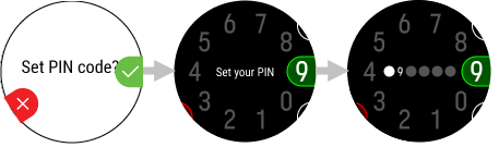Jeśli trzy razy z rzędu wprowadzisz nieprawidłowy kod PIN, zegarek zostanie zablokowany na jedną minutę. Dalsze nieprawidłowe próby wydłużą czas oczekiwania do pięciu minut. Po kilku nieudanych próbach zegarek poprosi o zresetowanie kodu PIN poprzez przywrócenie ustawień fabrycznych.