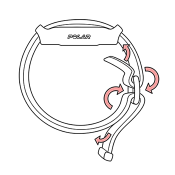 • 如果您将设备戴在左手上,请确保 Polar 徽标向上朝向手臂。