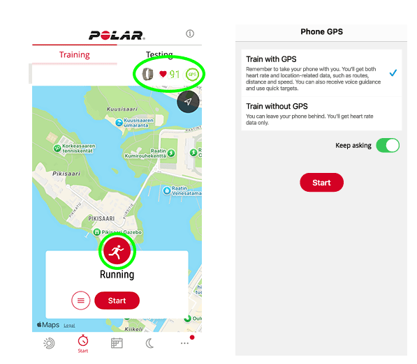 - Dans l'application Polar Flow, allez sur Démarrer > Entraînement.