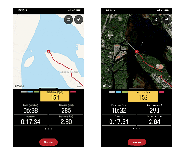 Quando utilizzi l'app Polar Flow per registrare l'allenamento, vengono registrati sia i dati relativi alla frequenza cardiaca sia quelli relativi alla posizione. Puoi monitorare entrambi in tempo reale durante la sessione. Puoi ricevere anche la guida vocale e usare gli obiettivi rapidi.