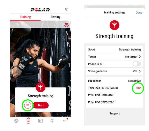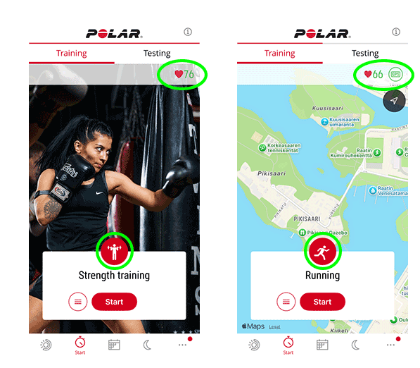 - Nell'app Polar Flow vai a Inizia > Allenamento.