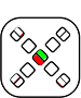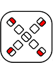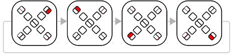 - Proces ładowania sygnalizowany jest przez cztery czerwone diody LED zapalające się kolejno zgodnie z ruchem wskazówek zegara. Gdy akumulator jest w pełni naładowany, czerwone diody LED świecą światłem ciągłym.