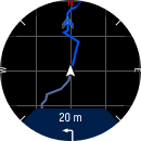 - Start turn-by-turn guidance: Activates turn-by-turn guidance for the current route. The watch provides instructions through sound and vibration alerts and shows which way to turn. Turn-by-turn guidance is enabled by default for Komoot routes. When turn-by-turn guidance is active, the option Stop turn-by-turn guidance appears in the menu.