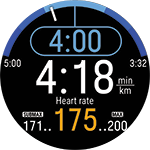 - The sport profile is shown in a purple color in the test view. Choose an appropriate indoor or outdoor running sport profile. Stay in the pre-training mode until the watch has found your heart rate and the GPS satellite signals (GPS icon turns green).