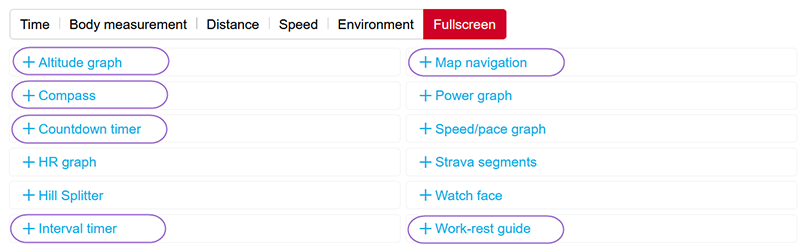 Per usare ZoneLock per bloccare la zona di velocità/andatura o di potenza, devi anche aggiungere la visualizzazione Grafico velocità/andatura o Grafico potenza a schermo intero alle visualizzazioni allenamento del profilo sport.
