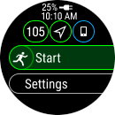 - O ícone de bateria cheia indica que o relógio está totalmente carregado.