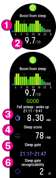 Pontuação do sono (1-100): Uma pontuação que resume o tempo e a qualidade do sono em um número único.