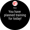 Päivän suunniteltu treeni: Saat kelloosi ilmoituksen päivän suunnitelluista treeneistä. Halutessasi voit aloittaa suunnitellun treenin ilmoituksen kautta. Siirry treenin aloitustilaan napauttamalla ilmoitusta tai valitsemalla OK. Sinulle ehdotetaan kuluvalle päivälle suunnitellun treenitavoitteen aloittamista. Päivän suunniteltu treeni ‑ilmoitus on oletusarvoisesti päällä.