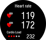 Tepová frekvence Průměrná a maximální tepová frekvence při tréninku Kardio zátěž z tréninku |