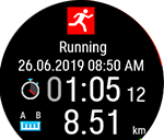 V časovém náhledu přejděte potažením doleva nebo doprava na ciferník Poslední tréninky a potom klepněte na displej. Zobrazí se tréninkové přehledy za posledních čtrnáct dní. Potahováním nahoru nebo dolů přejděte na požadovaný trénink a potom klepnutím na tento trénink otevřete přehled. V hodinkách můžete mít uloženo maximálně 20 tréninkových přehledů. |