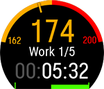 Ha a Flow alkalmazásban vagy webszolgáltatásban phased training target (szakaszos célkitűzés) elemet hoztál létre, és szinkronizáltad az órával, akkor az alábbi alapértelmezett edzési célkitűzés fog megjelenni az első edzési nézetként: