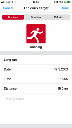 Sådan opretter du et træningsmål i Polar Flow-appen: