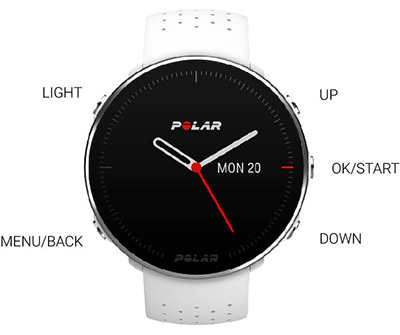 Podświetlenie tarczy Naciśnij i przytrzymaj, aby zablokować przyciski Naciśnij, aby przejść do menu podręcznego |