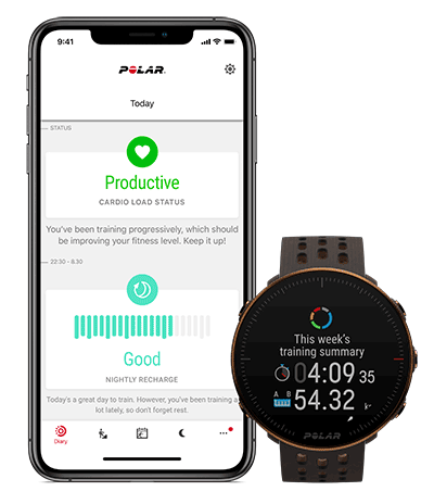 从 App Store®或 Google PlayTM 获取 Polar Flow 应用程式。在训练后将您的手表与 Flow 应用程式同步,并获得关于您的训练结果和表现的即时概况和反馈。在 Polar Flow 应用中,您还可查看您在一天中的活跃程度、您的身体在夜间从训练和压力中恢复的程度、以及您的睡眠质量。根据 Nightly Recharge 自动夜间测量以及我们通过您测得的其他参数,您将会在 Flow 应用中获得关于练习的个性化提示,以及在那些尤为糟糕的日子里关于睡眠和调节能量水平的提示。