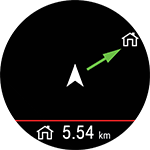 - Lo sportwatch mostra il rilevamento e la distanza diretta (in linea retta) tra la tua posizione e il punto di partenza.
