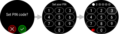 如果您連續三次輸入錯誤的 PIN 碼,您的手錶將鎖定一分鐘。繼續輸入錯誤會使等待時間增加到五分鐘。多次嘗試失敗後,手錶會透過執行原廠重設,提示您重設 PIN 碼。