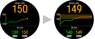 Ha rögzíteni szeretnéd azt a pulzuszónát, amelyben éppen vagy, tartsd lenyomva az OK gombot a teljes képernyős Pulzusgrafikon nézetben, vagy a Flow bármely más szerkeszthető nézetében.
