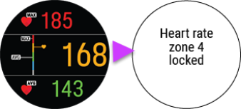 Du kan bruke ZoneLock-funksjonen til å låse sonen du for øyeblikket befinner deg i, basert på puls, hastighet/tempo eller effekt, og sørge for at du holder deg i den valgte sonen under trening uten å måtte sjekke klokken. Hvis du går utenfor den låste sonen under trening, varsler klokken deg med en vibrasjon.