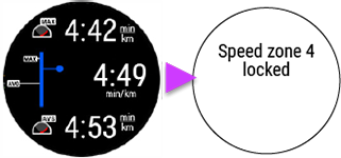 Slik låses hastighet/tempo-sonen som du for øyeblikket befinner deg i: trykk på og hold OK i fullskjermvisningen av Hastighet/tempo-diagrammet.