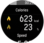 Saad Flow' võrguteenuse spordiprofiilide alammenüüs valida, milliseid andmeid treeningu ajal kuvatakse. Vaikimisi kuvatakse ujumistreeningu ajal ekraanil järgmised andmed: