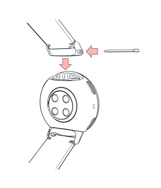 - Put the adapter into place, and then insert the pin into the pin hole on the adapter, and push it firmly into place with a ballpoint pen. Make sure the knob on the pin is the right way around.