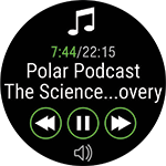 - Pulsa el botón ARRIBA para moverte por los controles de música en la vista de entrenamiento durante una sesión.