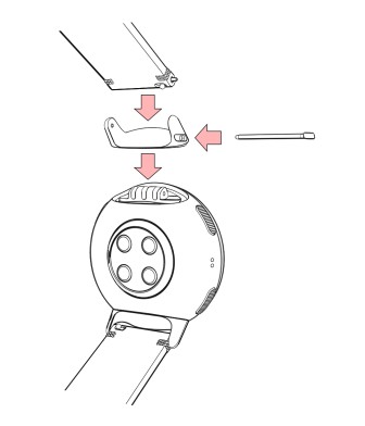 - Aseta sovitin paikalleen, työnnä tappi sille tarkoitettuun reikään sovittimessa ja paina se tiukasti paikalleen kuulakärkikynällä. Varmista, että tapin pää on oikein päin.
