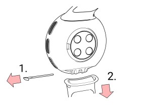 Suosittelemme irrottamaan rannekkeen kuulakärkikynän avulla.
