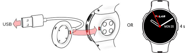 - Polar hesabınızla oturum açın veya yeni bir hesap oluşturun. Kutudaki kabloyu kullanarak saatinizi bilgisayarınızın USB bağlantı noktasına takın. Polar Flow web hizmetinde oturum açma ve kurulum işlemlerinizde size rehberlik edeceğiz.