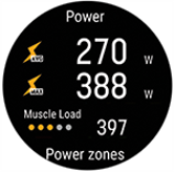 Běžecký výkon se měří ze zápěstí, pokud je nastaven sportovní profil běžeckého typu a je dostupný systém GPS. Cyklistický výkon se zobrazuje, pokud je nastaven sportovní profil cyklistického typu a používáte externí cyklistický snímač silového výkonu.