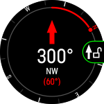 In the compass view press OK to lock your current bearing. The display will then show the deviation from your locked bearing in red.
