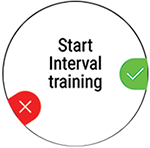 Ha párosított Polar pulzusérzékelőt viselsz, az óra automatikusan a csatlakoztatott érzékelőt használja az edzésszakaszok során. Egy kék kör jelzi, ha a pulzusmérés az érzékelő használatával történik. |