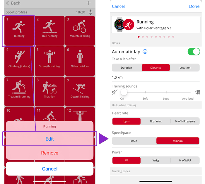 Sportprofielen in Polar Flow