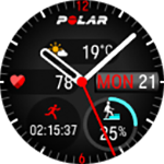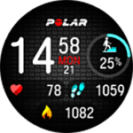 Andere widgets waaruit je kunt kiezen, zijn Analoge seconden, Digitale seconden, Datum, het Polar-logo en Je initialen: