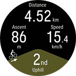 Som standard er Hill Splitter-treningsvisning slått på i alle løpe-, sykle- og bakke-sportsprofiler, men den kan legges til en hvilken som helst sportsprofil som bruker GPS og barometrisk høydemåling.