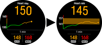- W zależności od wybranej intensywności możesz zobaczyć swoje tętno lub prędkość/tempo oraz górne i dolne limity tętna lub prędkości/tempa dla danej fazy.