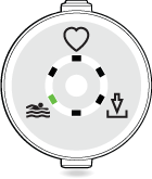 Pour choisir le mode natation, appuyez brièvement sur le bouton immédiatement après l’allumage de la LED verte. Répétez des pressions brèves jusqu’à ce que la LED située à côté de l’icône natation s’allume. En cas de sélection du mode natation, la LED d’état située sur le côté s’illumine en blanc.