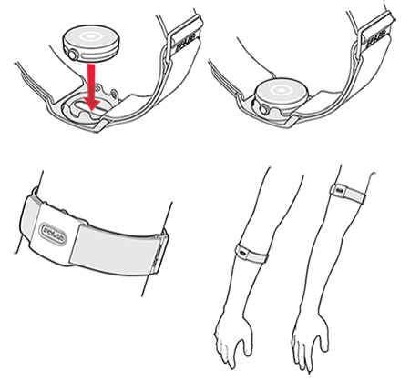 - Plaats de sensor met de lens naar boven gericht in de armbandhouder.