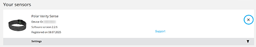 – iOS: Innstillinger > Bluetooth > trykk på «i» ved siden av Polar Verity Sense > Glem denne enheten.