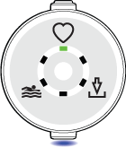 Sensoren starter i pulsmodus som standard. Det indikeres av det grønne LED-lyset ved siden av hjerteikonet og det blå LED-lyset på siden.