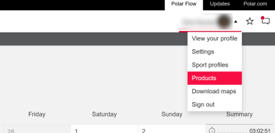 Klicka på ditt namn i det övre högra hörnet och välj Produkter.