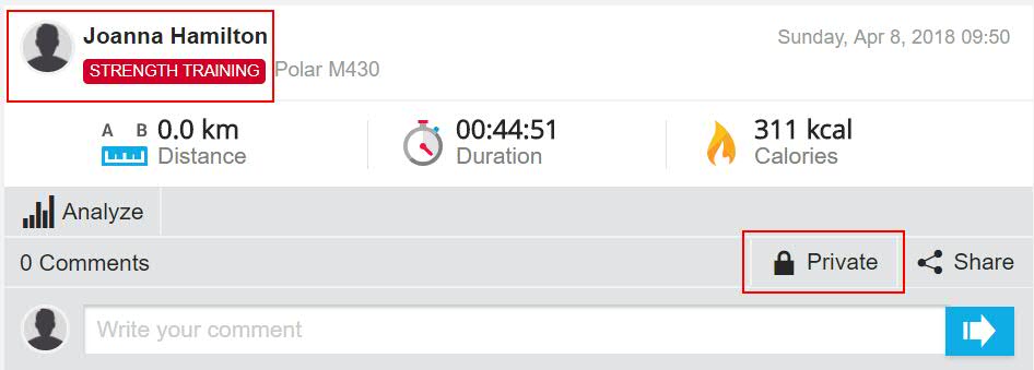 • Kaikki (mukaan lukien sellaiset, jotka eivät ole kirjautuneen Flow’hun) näkevät treenisi.