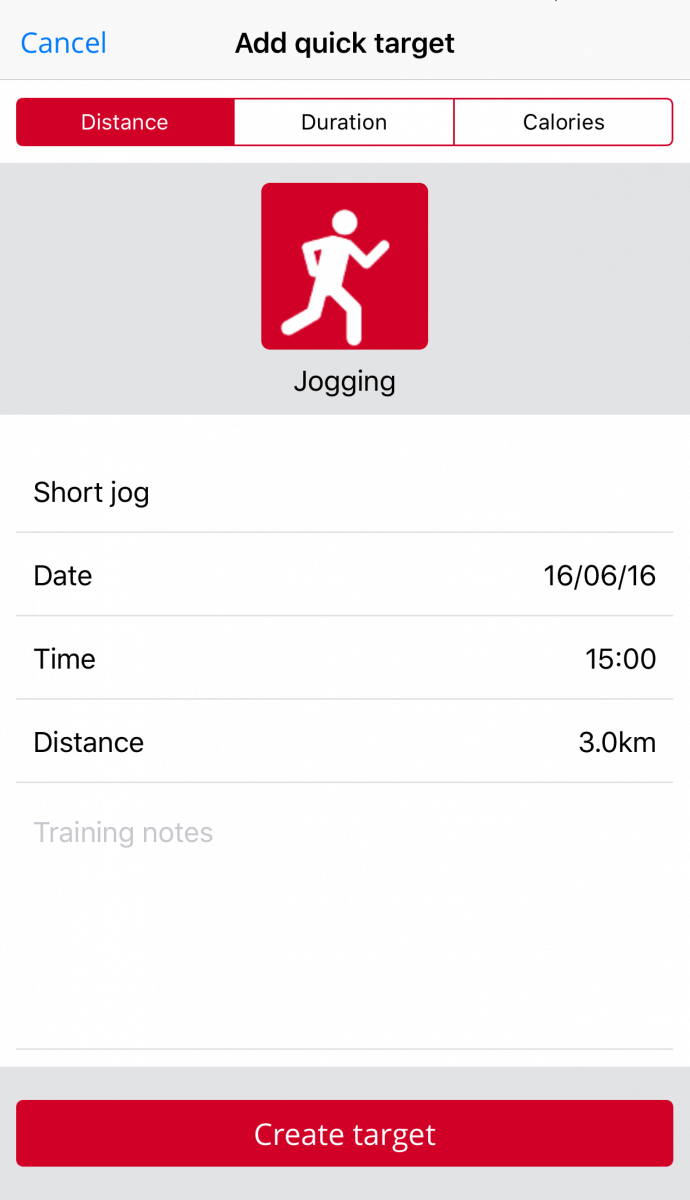 在最后阶段,轻触创建目标 以将其移动至您的训练日历。